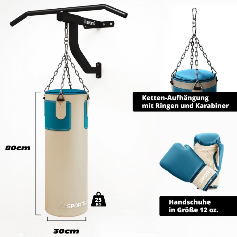 Boxovací pytel s příslušenstvím, béžovo-modrý set na trénink
