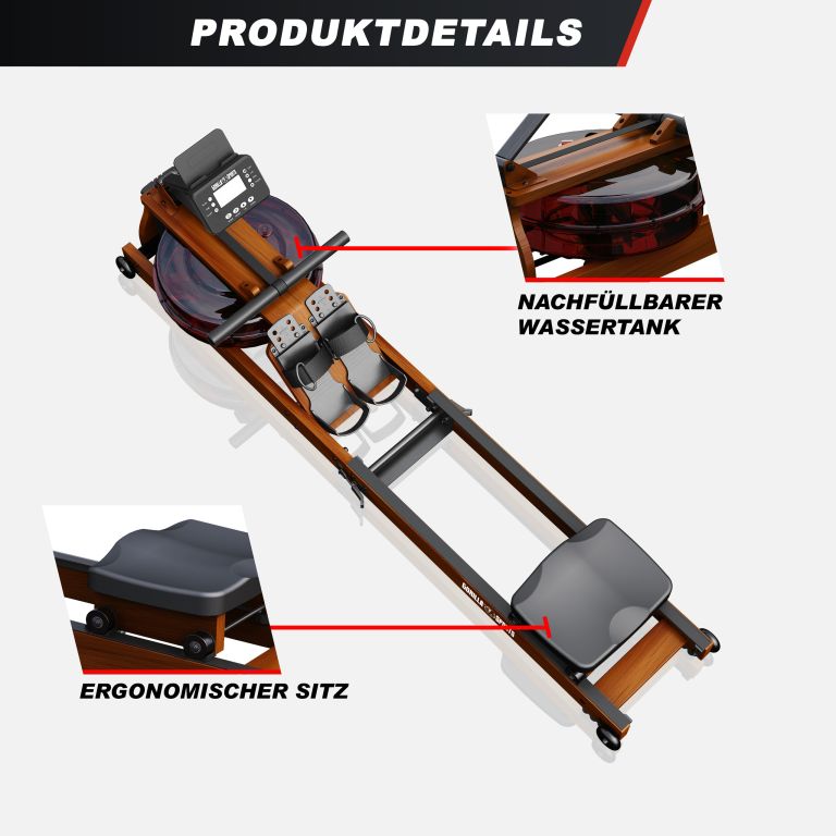 Užijte si trénink, který přirozeně spojuje sílu, vytrvalost a eleganci. Tento dřevěný veslovací trenažér s vodním odporem vám poskytne autentický zážitek jako při skutečném veslování. Díky 6stupňové vodní zátěži, která se automaticky přizpůsobuje vaší intenzitě, můžete trénovat ve svém tempu a zároveň šetřit klouby. Ergonomické sedadlo a nastavitelné opěrky nohou zajistí maximální pohodlí během každé jízdy.