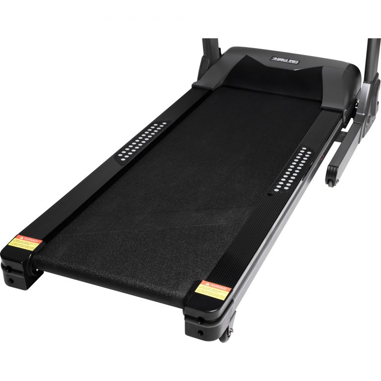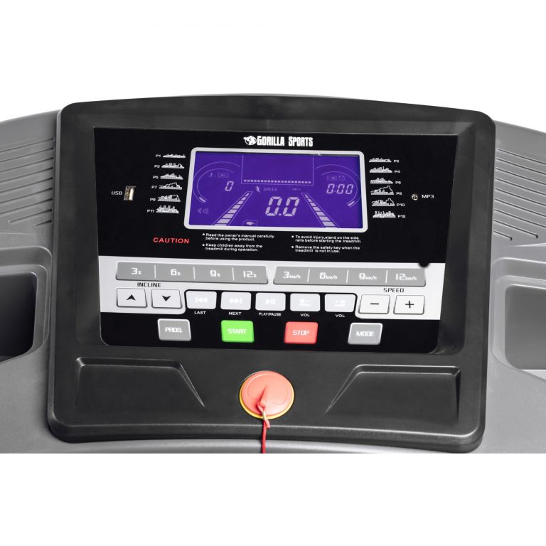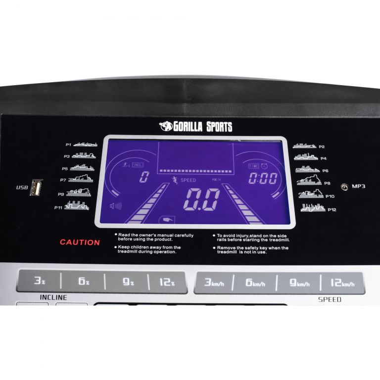 Profesionální běžecký pás od Gorilla Sports má kompletní řadu vybavení, která pokrývá vše, co byste si přáli. Integrovaný elektromotor má výkon 2 HP a stupňuje pás na rychlost mezi 1 a 16 km / h. Gumová část pásu zajišťuje bezpečnost při vysokých rychlostech. Hledáte další výzvu? V tomto případě lze v 16 krocích nastavit úhel stoupání až do maximálně 20 stupňů. Zařízení má 6palcový LCD monitor s modrým podsvícením pro zaznamenávání tréninkových dat a připojení MP3 a USB. Integrovaný magnetický zámek, skládací mechanismus s hydraulickými kolečky pro snadnou přepravu. Má tlačítka pro přímý výběr na displeji a ovládací madel, funkci nouzového zastavení, 24 tréninkových programů, funkce a programy profesionálního běžeckého tréninku, displej se zobrazením doby tréninku, tréninkové vzdálenosti, rychlosti, sklonu, spotřeby kalorií a pulzu / srdečního tepu pomocí snímače pulsu ruky. Obsahuje ruční program trénink se specifikací cíle (čas, vzdálenost, spotřeba kalorií). Stanovení indexu tělesné hmotnosti.