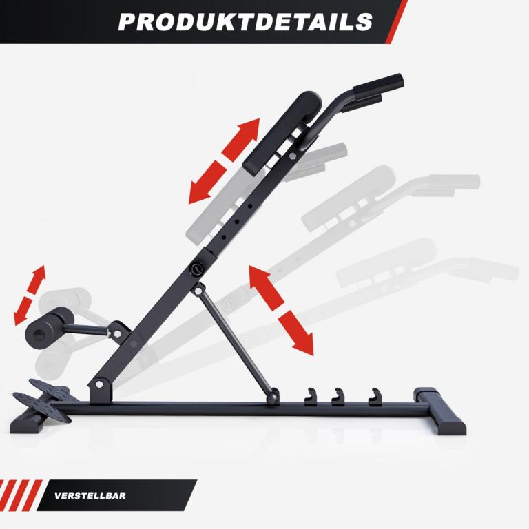 Posilovací lavice pro hyperextenze, sit-upy a další cviky. 6 pozic nastavení, snadné složení, kompaktní rozměry.