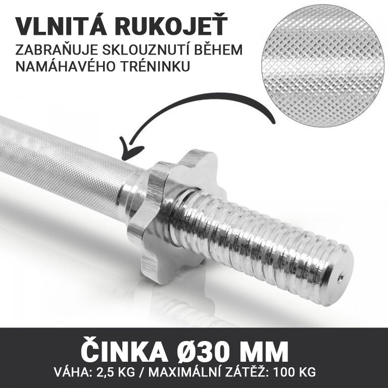 Černý kufřík je vyroben z pevného plastu s polstrovanou vložkou uvnitř pro bezpečnou přepravu činek. Činky se přepravují v rozloženém stavu, takže při cestování zabírají málo místa. Před zahájením tréninku můžete kotouče v několika jednoduchých krocích upnout na tyče a začít cvičit během okamžiku. Hvězdicový zámek pro upevnění kotoučů se snadno a bezpečně používá. K dispozici máte čtyři zátěžové kotouče, každá o hmotnosti 1,25 kilogramu, a čtyři kotouče o hmotnosti 2,5 kilogramu. Kombinujte je podle své individuální tréninkové hmotnosti, která může být maximálně 17,5 kilogramu na jedné tyči nebo celkem 20 kilogramů s oběma tyčemi. S činkou můžete provádět mnoho cviků na paže, ramena, záda a břicho.