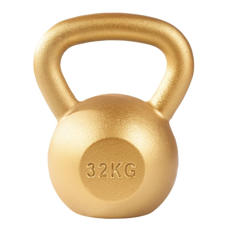 Gorilla Sports Kettlebell zlatý, litina, 32 kg