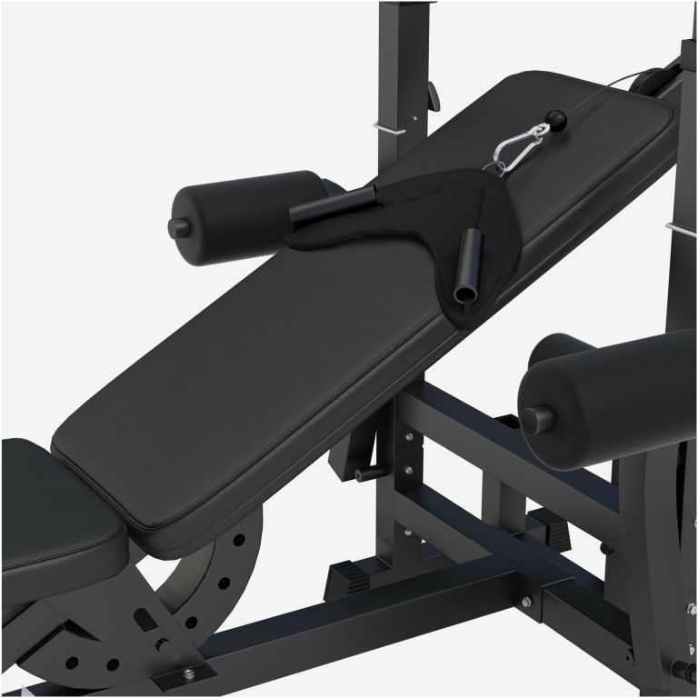 Stabilní konstrukce z masivní oceli, nastavitelná lavice i stojan na bicepsové zdvihy, integrovaný kabelový modul a kvalitní závaží z odolného plastu zajistí bezpečné a efektivní cvičení. Vše je navrženo pro snadnou montáž a dlouhou životnost, takže si užijete trénink bez starostí.