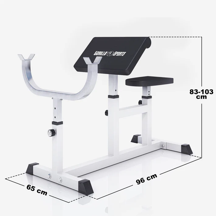 Cvičení na této posilovací lavici se provádí pomocí obouruční činky, zpravidla s těžším závažím. Je třeba se však vyvarovat několika častých chyb: naklánění či zvedání trupu při cvičení, nesprávný rozsah pohybu a příliš vysoká hmotnost kotoučů. Lavice stojí stabilně na protiskluzových nohách a přesvědčí nekomplikovanou manipulací díky rychlému nastavení zajišťovacího čepu. Sedadlo, opěrka a držadlo na činky jsou nastavitelné v pěti směrech a polstrovaná opěrka rukou zmírňuje namáhání loktů a zad během tréninku.