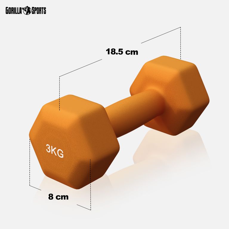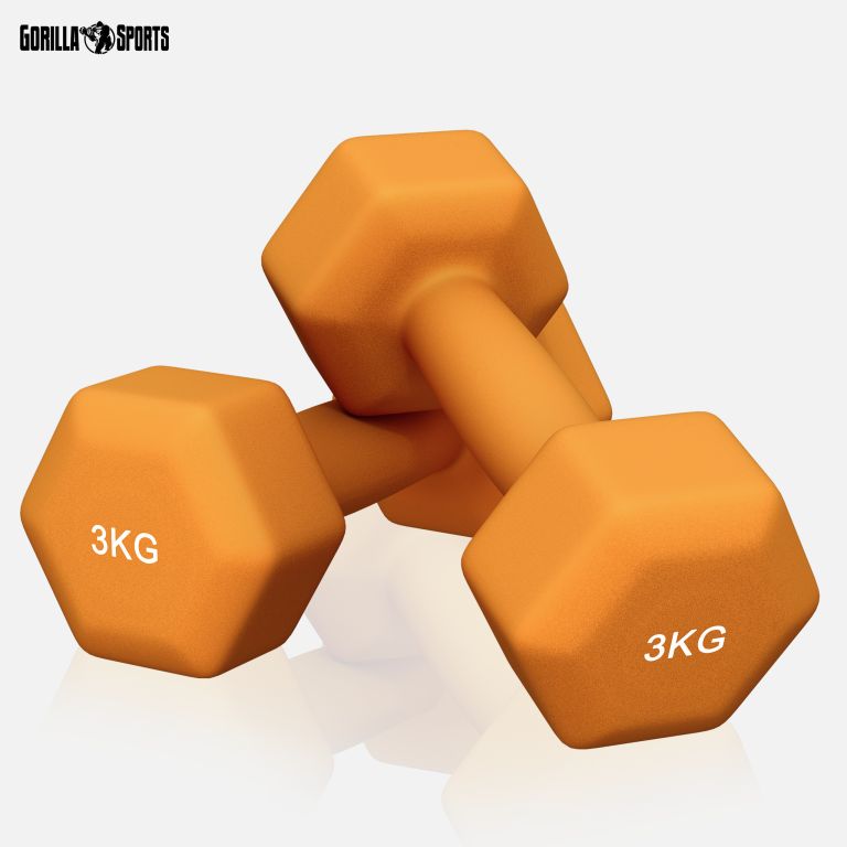 Gorilla Sports Neoprenové činky 3 kg – oranžové, sada 2ks