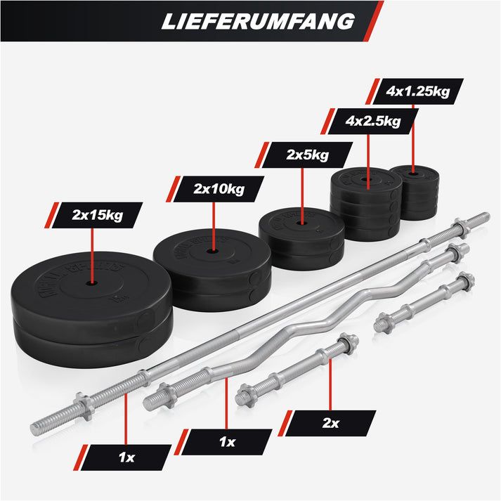 Robustní konstrukce z oceli zajistí stabilitu a bezpečnost. Nosnost lavice až 300 kg a stojanu 200 kg uspokojí i náročné uživatele. Sada obsahuje různé typy os a kotoučů s plastovým povrchem, snadná údržba a rychlá montáž. Vhodné pro činky s průměrem 30 mm.