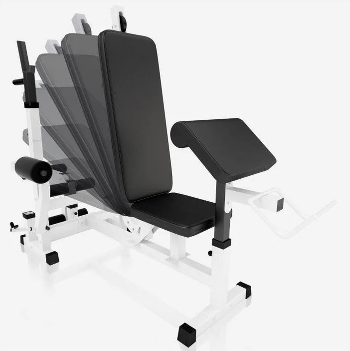Robustní konstrukce z litiny zaručuje dlouhou životnost a bezpečnost při cvičení. Šestisměrně nastavitelné opěradlo, tři polohy pro leg press a pětisměrný stojan na činky umožní přesné přizpůsobení vašim potřebám. Rychlá montáž a snadná údržba dělají z této stanice ideální volbu pro každého, kdo chce mít kvalitní domácí posilovnu.