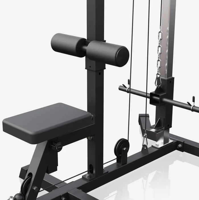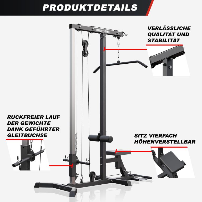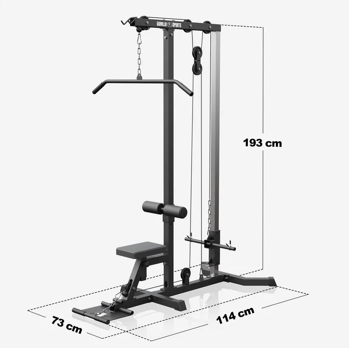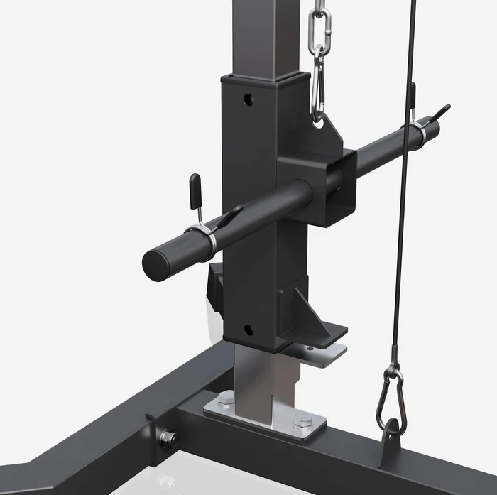 Masivní ocelová konstrukce zaručuje dlouhou životnost a bezpečnost. Snadno nastavitelné polohy sedáku i opěrek umožní přesné přizpůsobení vaší postavě. Věž je vybavena dvěma kladkami, dvěma typy úchopů a je vhodná pro kotouče s průměrem 30 mm. Údržba je minimální, montáž zvládnete sami.