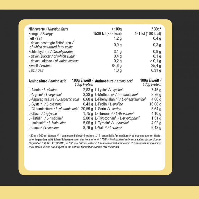 Pozornost je třeba věnovat pestré a vyvážené stravě a zdravému životnímu stylu. Složení: Mléčná bílkovina (93,9 %), aroma, vysoce odolejovaný kakaový prášek, jedlá sůl, protispékavá látka (fosforečnan vápenatý), sladidlo (sukralóza), emulgátor (sójový lecitin).