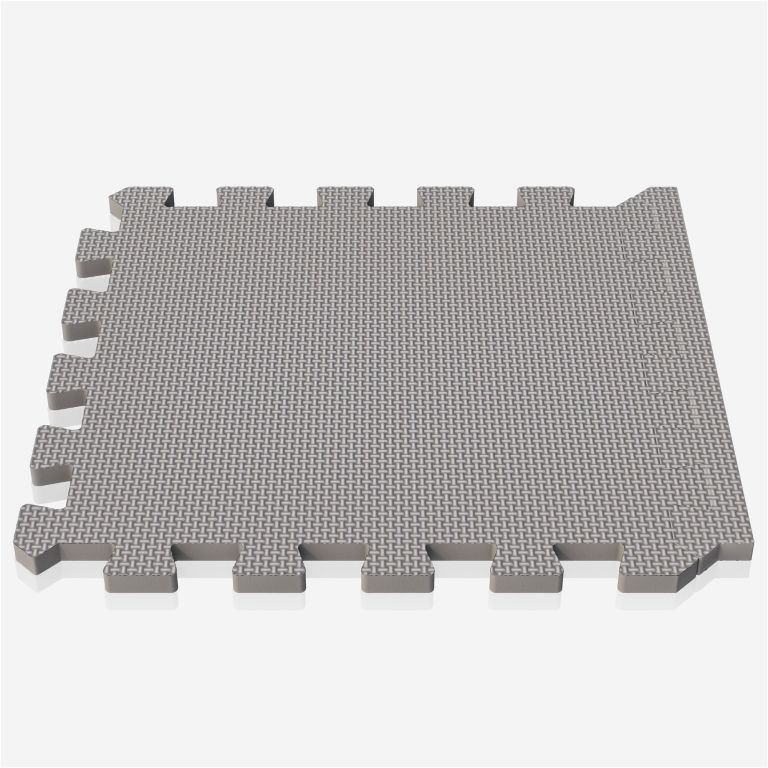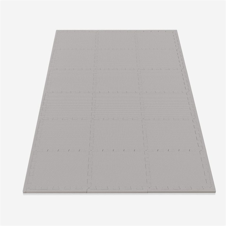 Fitness puzzle podložka v šedé barvě chrání podlahu a tlumí hluk. Snadná montáž, univerzální použití.