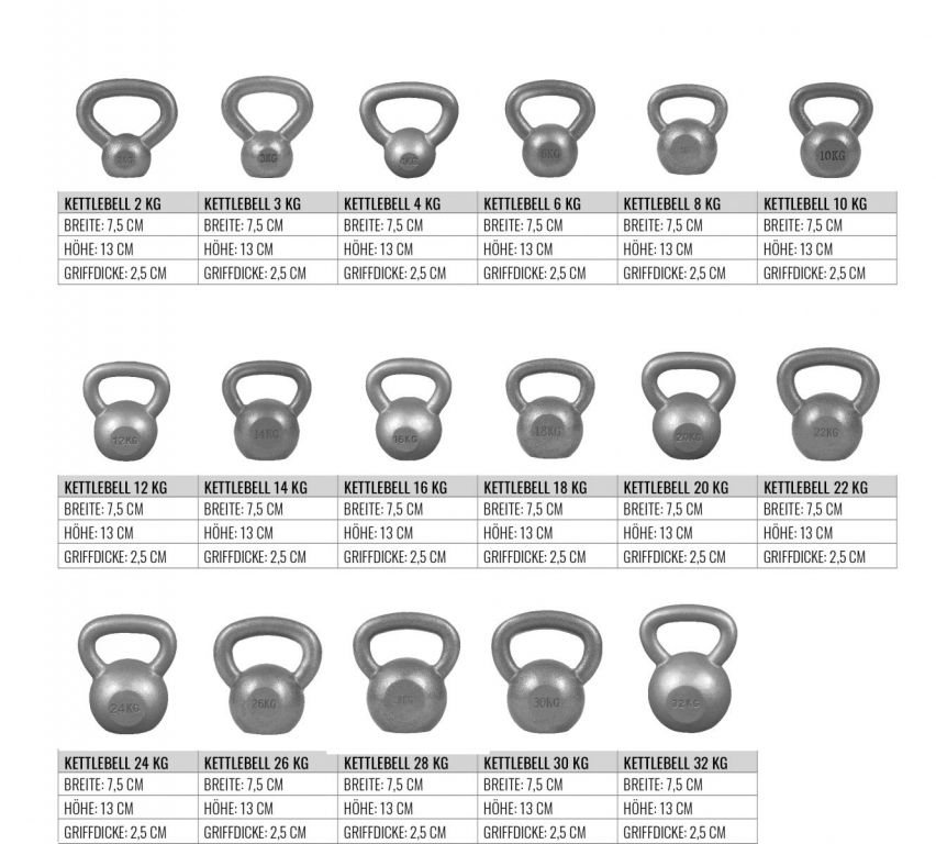 Gorilla Sports set kettlebell, litinová, celková váha 144 kg