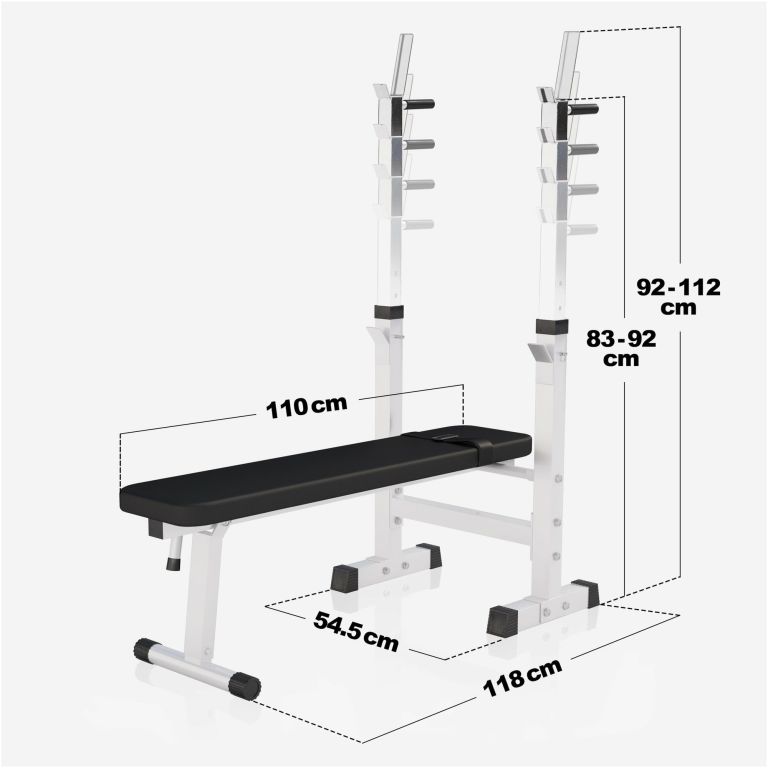 Stabilní a bezpečná konstrukce s nastavitelnou výškou stojanů umožňuje individuální nastavení pro různé cviky. Činkový set s plastovým povrchem chrání podlahu před poškozením. Maximální nosnost lavice je 200 kg, údržba je rychlá a snadná.
