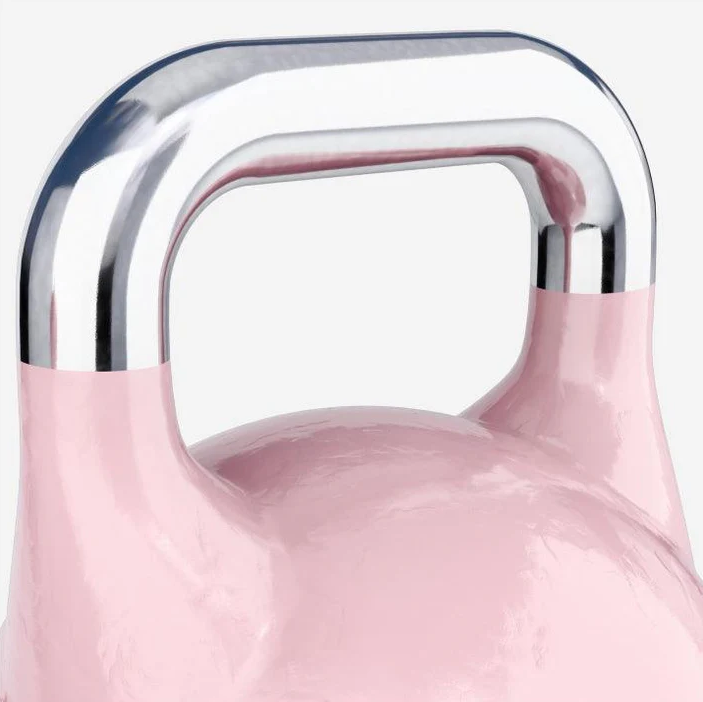 U fitness kettlebellů není specifikován materiál ani velikost. Oproti tomu jsou konkurenční varianty v zásadě vyrobeny z oceli a mají jednotnou velikost. Bez ohledu na hmotnost zvládá každý soutěžní kettlebell totéž. To vede k větší bezpečnosti při manipulaci. Robustní materiál si navíc dobře poradí s drsným kontaktem se zemí, k čemuž může dojít při intenzivním tréninku. Zde nabízený kettlebell je k dispozici s různými váhami, takže si můžete sestavit set kettlebellů podle svých představ. Všechny nabízené verze jsou vyrobeny z vysoce kvalitní masivní lité oceli a odpovídají velikostí a tvarem konkurenčnímu standardu. Spodní strana je zploštělá. Tímto způsobem se činka nedobrovolně neodvalí. A abyste mohli na první pohled rozlišit různé hmotnosti několika kettlebellů, každá váhová varianta má jinou barevnou povrchovou úpravu.