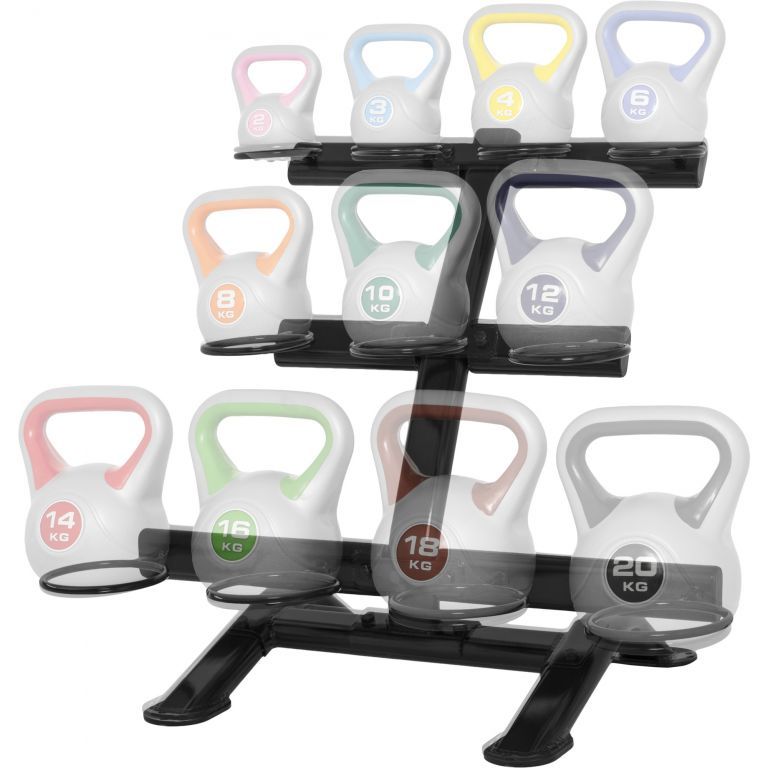Gorilla Sports Stojan s kettlebelly, 113 kg
