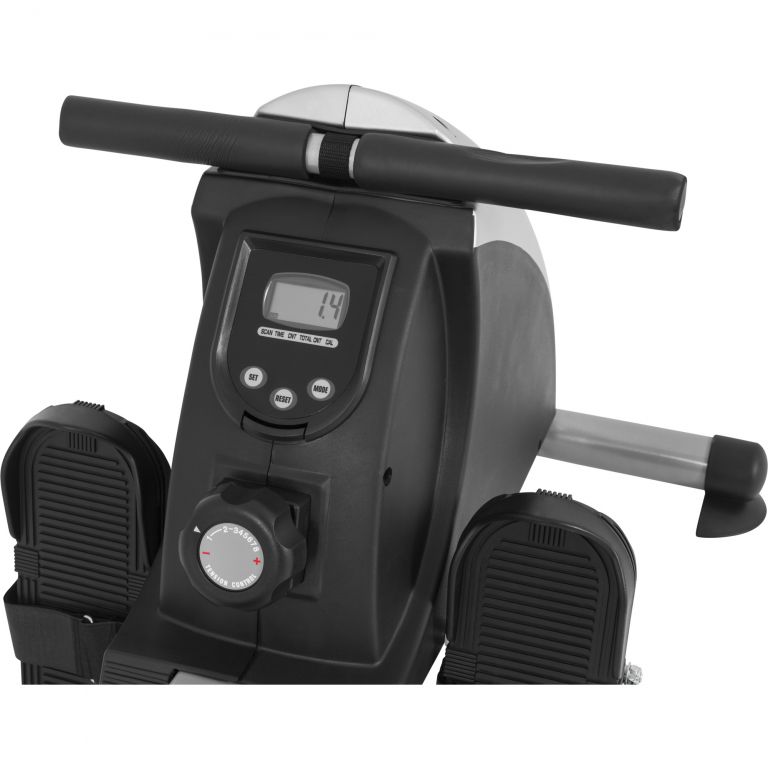 Veslovací trenažér intenzivně procvičuje ramenní a zádové svaly a ideálně podporuje další trénink těchto svalových skupin. Veslovací trenažér se rychle nastavuje a velmi snadno používá. Zejména tichý a bezúdržbový brzdový systém umí nadchnout a zajišťuje spokojené prostředí doma i ve studiu. Tento veslovací trenažér zaujme protiskluzovými nášlapy na pedálech a protiskluzovými smyčkami. Vysoce kvalitní kabel zajišťuje, že na veslovacím trenažéru můžete trénovat velmi dlouho. Ergonomické sedadlo se dokonale přizpůsobí i při dlouhodobém používání. Veslovací trenažér má integrovaný displej se zobrazením nejdůležitějších informací, tj. spotřeby kalorií, času, celkového počtu záběrů a některých dalších možností.