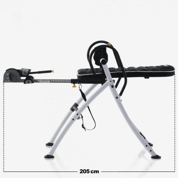 Je těžké uvěřit, že dokážete odlehčit zádům, procvičit je a zároveň uvolnit celé tělo. To je možné s gravitačním trenažérem. U nového modelu se znatelně zvýšil komfort i bezpečnost. Komfort se oproti předchozímu modelu výrazně zvýšil. Součástí nového designu je pasovaná, silně polstrovaná zádová opěrka, extrémně snadno a bezpečně fixovatelný držák nohou a systém fixace náklonu, který lze aktivovat v jakékoli poloze otočení. Robustní rám je vhodný pro tělesnou hmotnost do 160 kg.