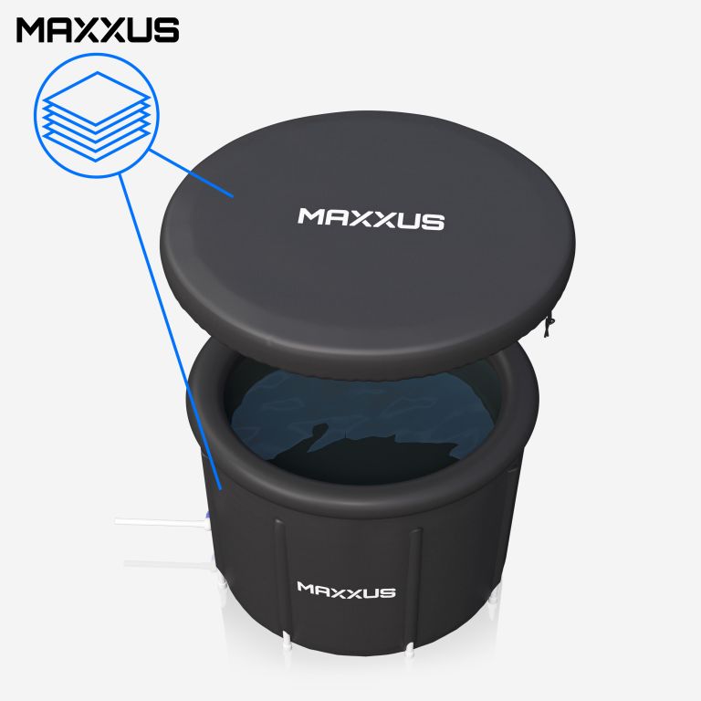 Nafukovací vana MAXXUS 450 l pro cold plunge terapii – izolovaná, lehká a vhodná pro vnitřní i venkovní použití.