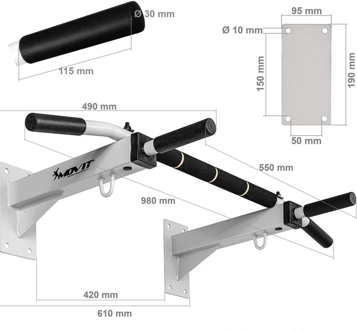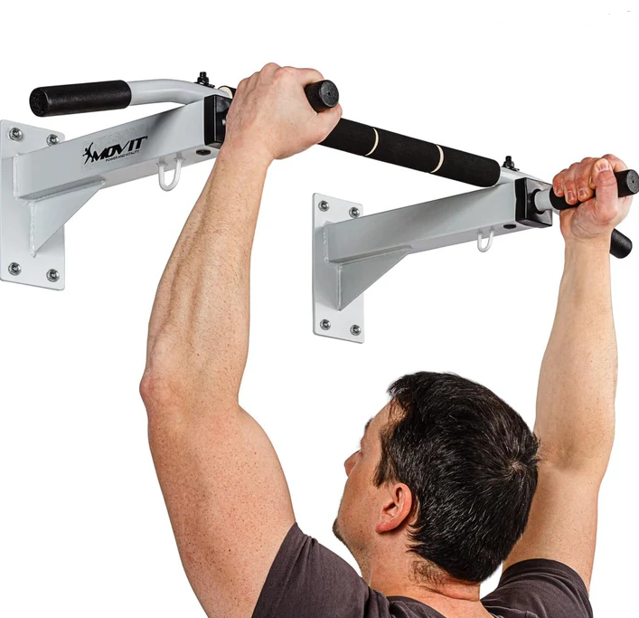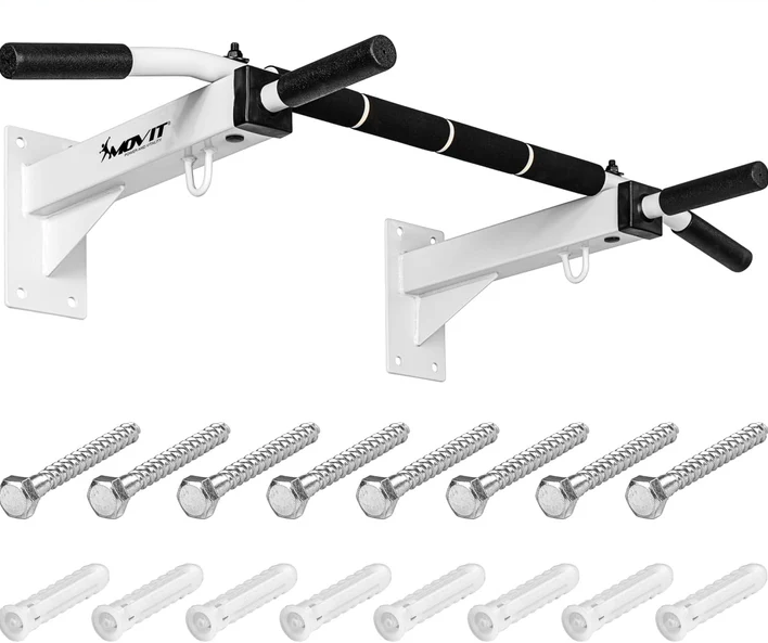 Vylepšete si domácí trénink s hrazdou MOVIT®, která je speciálně navržena pro montáž na zeď. Toto robustní zařízení je ideální pro posílení horní části těla a cíleně se zaměřuje na svaly paží, ramen, břicha a zad. Promyšlený design nabízí tři možnosti úchopu: široký úchop shora, kladívkový úchop a úzký, polstrovaný úchop pro větší pohodlí. Všechny úchopy zajišťují bezpečný úchop a trénink bez puchýřů – a to i při intenzivním tréninku. Hrazda je vyrobena z vysokopevnostních čtvercových ocelových trubek o rozměrech 50 x 50 mm a zaručuje výjimečnou stabilitu a maximální nosnost až 350 kg. Dvě oka ve tvaru U nabízejí další možnosti upevnění příslušenství, jako jsou boxovací pytle nebo odporové gumy .