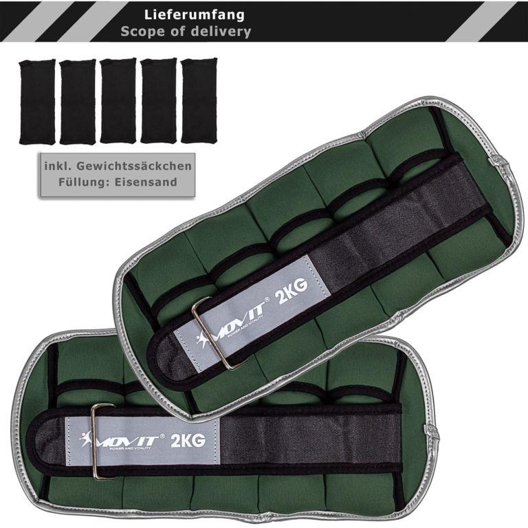 MOVIT Neoprenové reflexní zátěžové manžety, 2x2 kg, olivové594 Kč -
