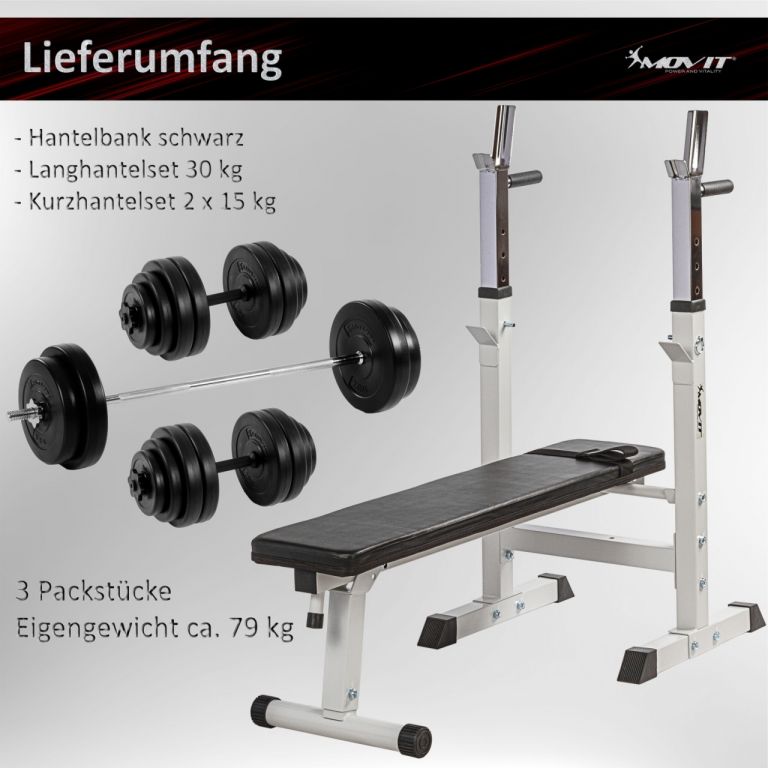Movit Posilovací lavice bílá + sada činek 60 kg