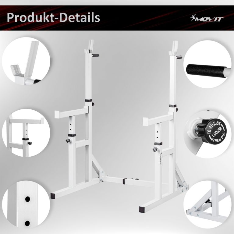 Robustní a stabilní stojan na činky se skvěle hodí do vaší domácí posilovny. Je ideální pro každý trénink s činkou a dřepy. Kompaktní a prostorově úsporný. Tento stojan je vhodný pro začátečníky i pokročilé uživatele.