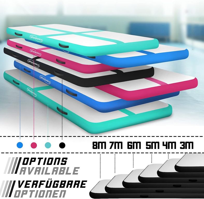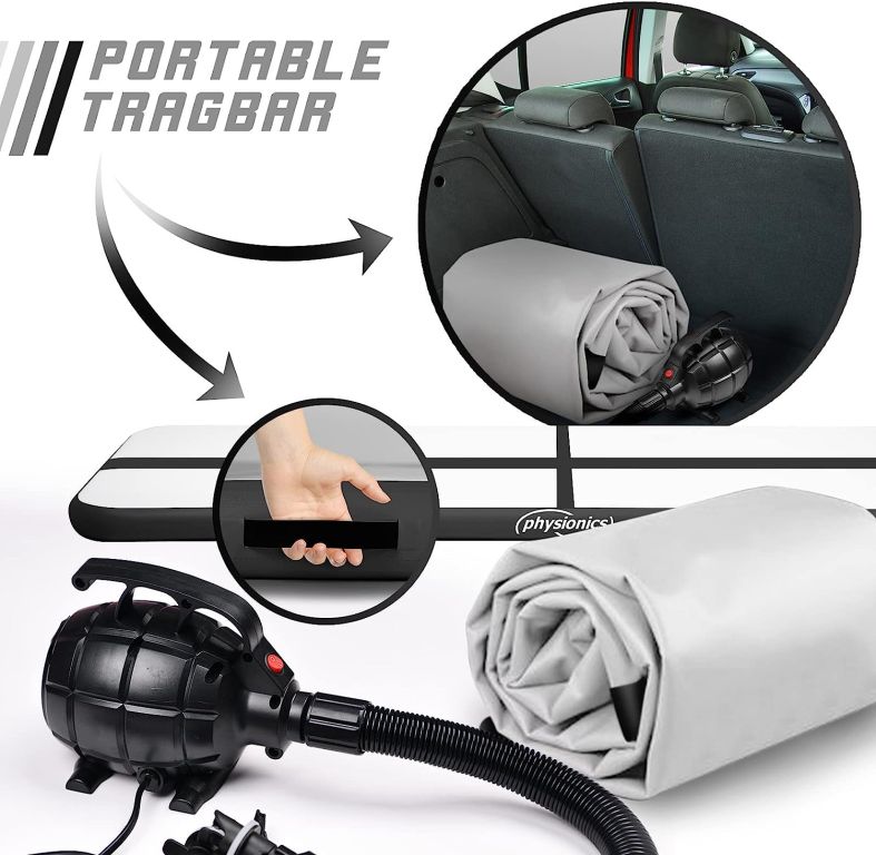 Physionics Airtrack nafukovací žíněnka, 4 m, černá