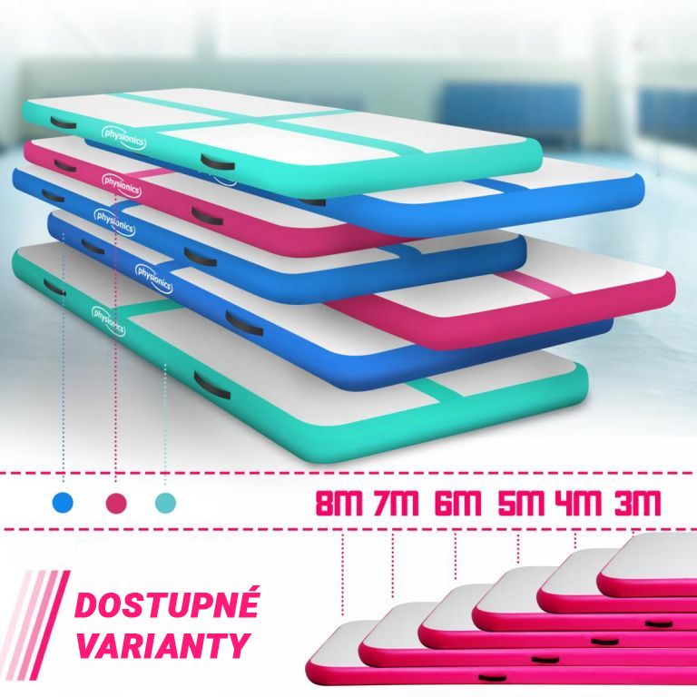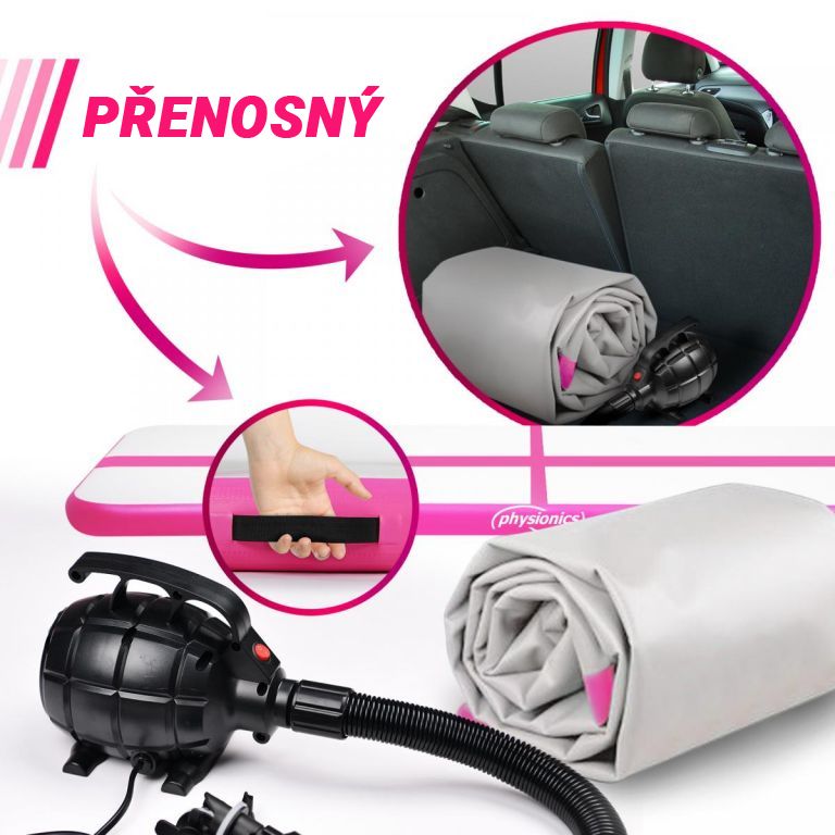 Physionics Airtrack nafukovací žíněnka, 4 m, růžová