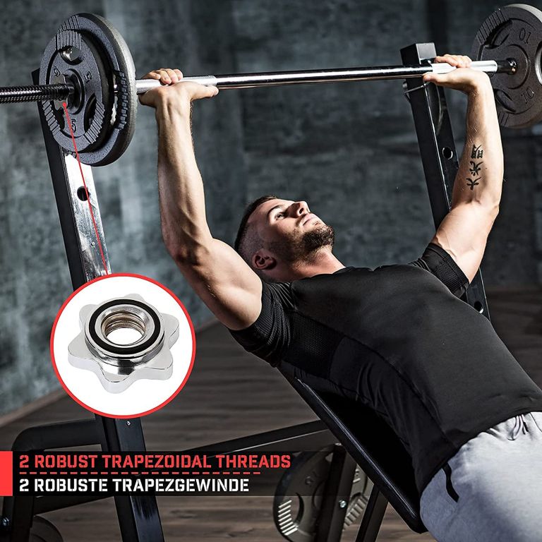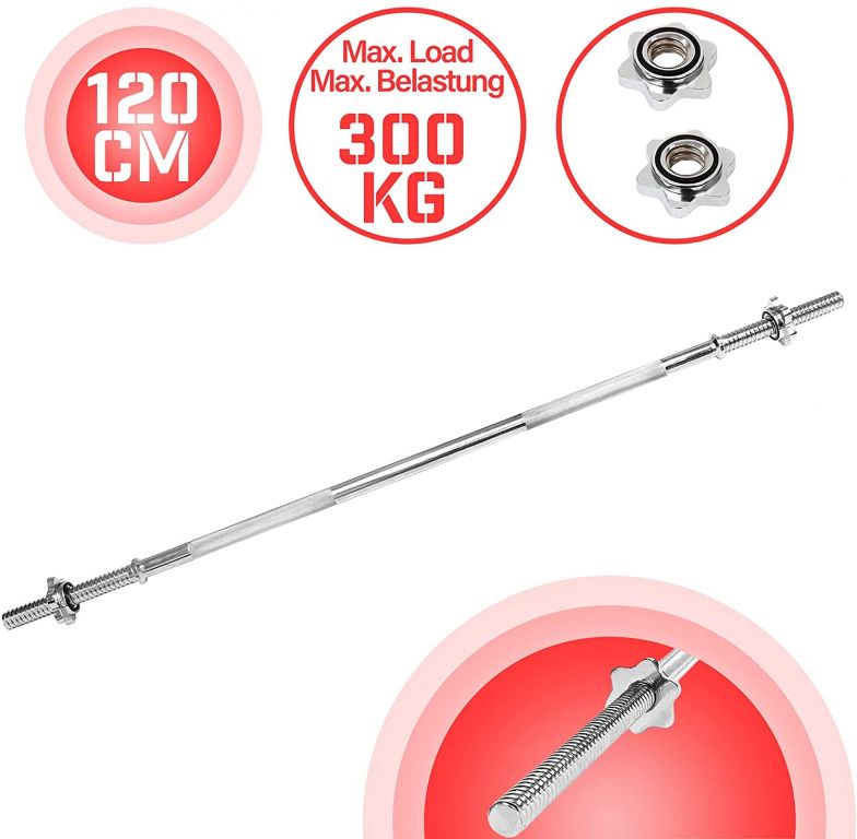 Tyč pro silový trénink umožňuje maximální zatížení 300 kg kotoučů, které jsou pevně uzavřeny hvězdicovými zámky. Zvedací tyč je vhodná pro všechny standardní kotouče 30/31 mm. Dvě 20 cm dlouhé rukojeti na fitness tyči mají protiskluzový povrch, který zajišťuje, že vám ruce z tyče nesklouznou.
