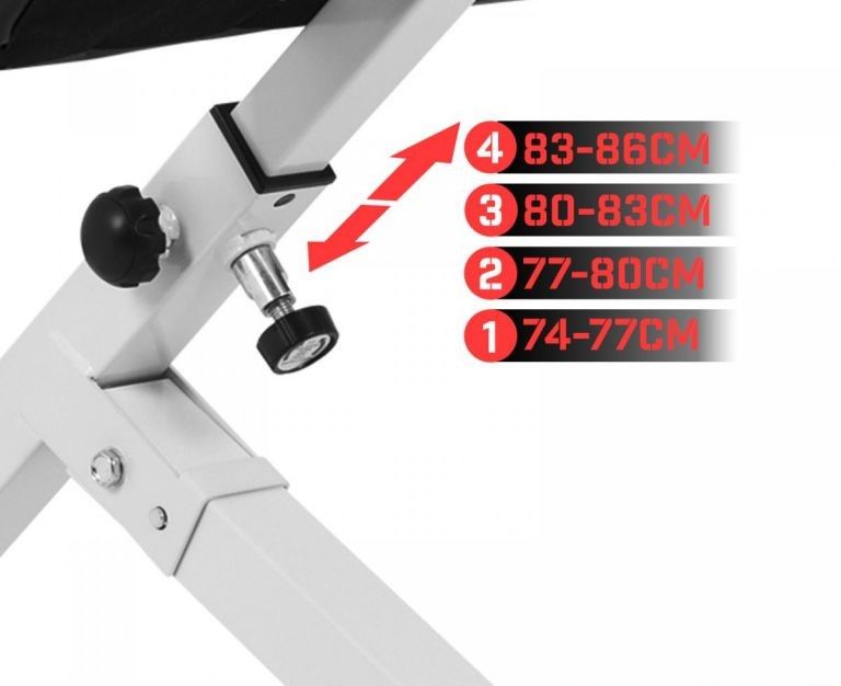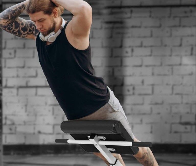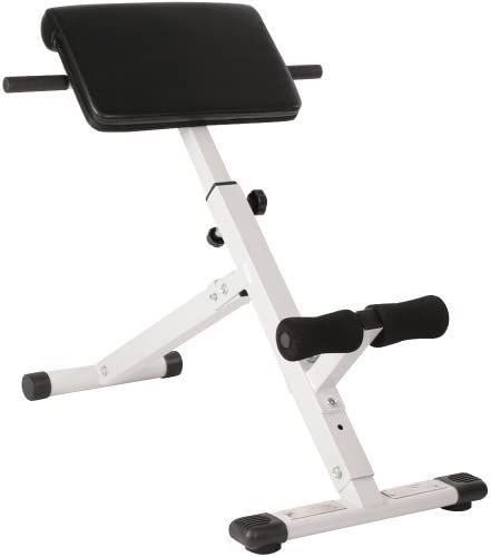 Tento trenažér je skládací a proto velmi úsporný. Má práškově lakovanou ocelovou konstrukci. Jeho praktické opěrné úchyty zajišťují stabilitu. Polstrovaná a výškově nastavitelná fixace nohou (pěnové válečky s vysokou hustotou). Čalouněný a čtyřikrát výškově nastavitelný zádový polštář. Efektivní cvičení díky úhlu 45°. Bederní polštář výškově nastavitelný ve čtyřech polohách: 74 - 77 cm, 77 - 80 cm, 80 - 83 cm, 83 - 86 cm.