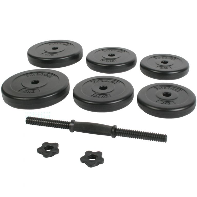 Sada obsahuje ergonomicky tvarovanou činku, 6 zátěžových desek a váží celkem 20 kg. Činka má protiskluzový žebrovaný úchopový povrch, takže se během tréninku můžete soustředit na zvedání závaží, zatímco hvězdicové zámky zajišťují zátěžové desky.