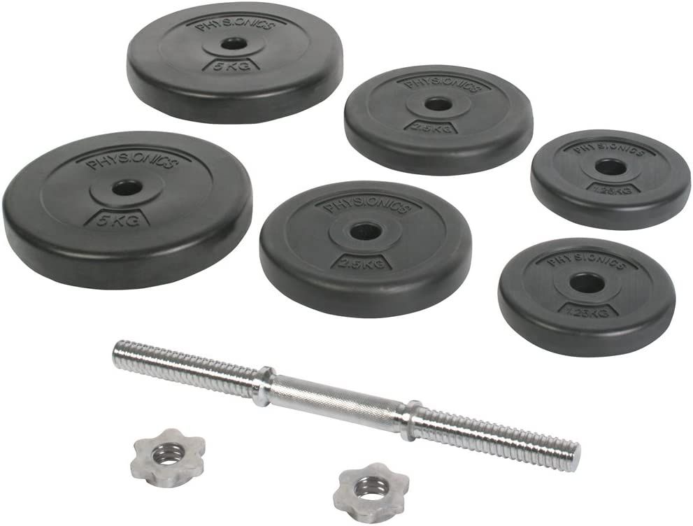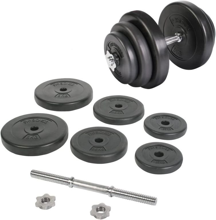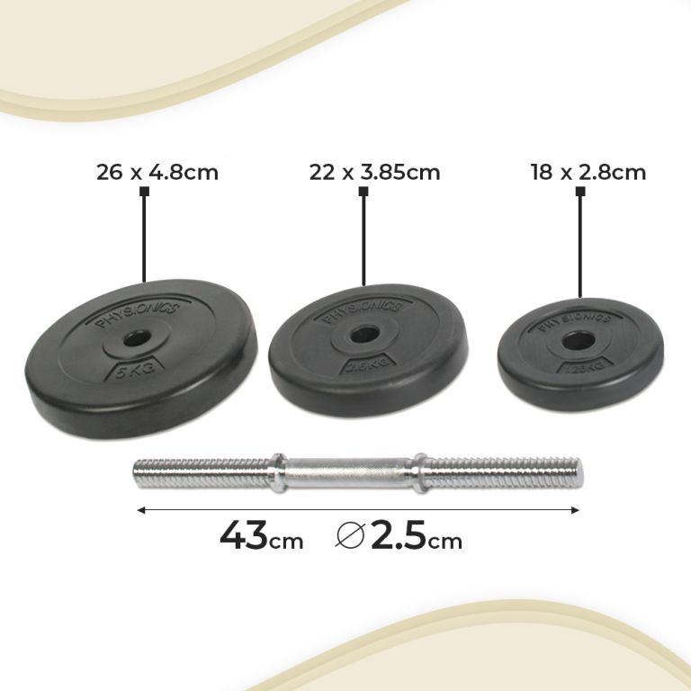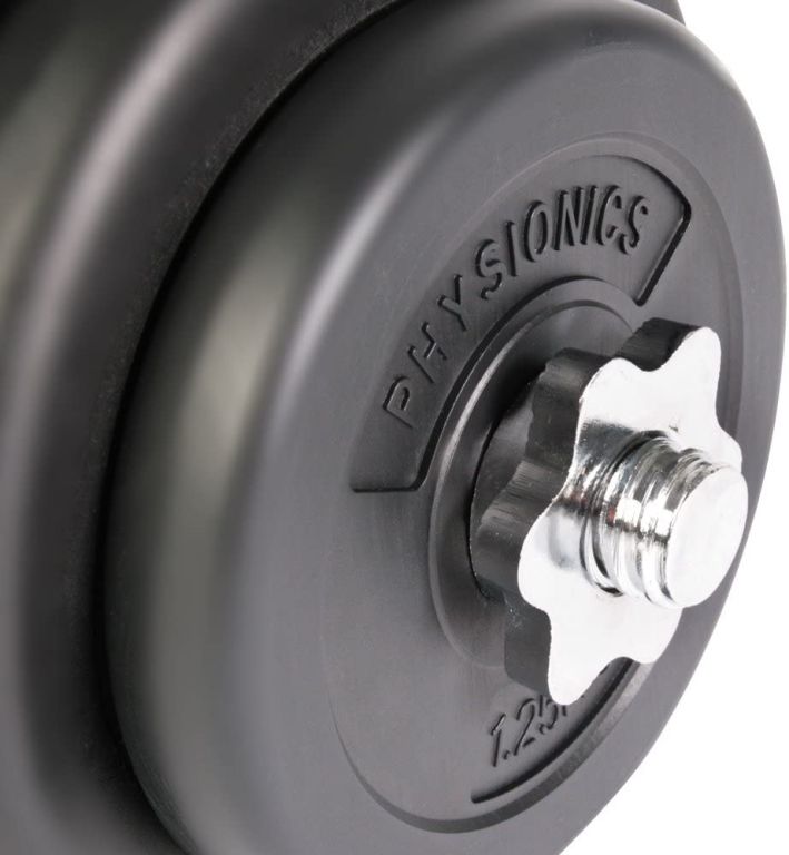 S touto sadou činek zaznamenáte úspěch velmi rychle. Každý trénink posiluje svaly. Trénink je však třeba provádět opatrně. Pro budování svalové hmoty se váhy zvyšují postupně. Měly by se zvyšovat po malých krocích každé čtyři týdny, aby se zátěž měnila. Proto je tato sada činek dodávána s různými závažími, která můžete použít k přizpůsobení svého tréninkového plánu. Všech šest zátěžových desek je bezpečně upevněno pomocí hvězdicových zámků; plastový kryt bez cinkání zabraňuje poškození podlahy. 14,5 cm žebrovaný úchopový povrch hřídele/tyče je protiskluzový, takže vám nebudou klouzat ruce i když se budou potit.