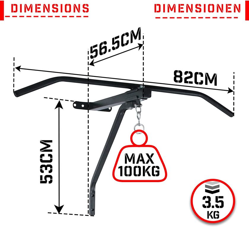 Robustní ocelový nástěnný držák slouží k zavěšení boxovacího pytle a má ještě integrovanou tyč na přitahování. Slouží pro snadnou montáž na stěnu. Vhodně namontované posilovací zařízení lze zatížit až do hmotnosti přibližně 100 kg.