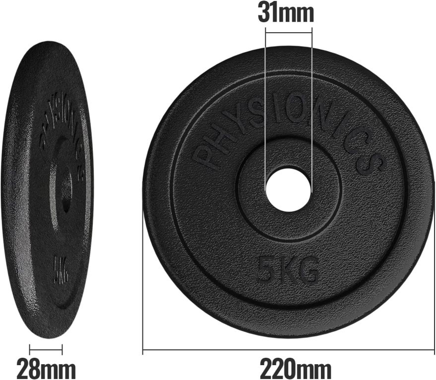 PHYSIONICS Sada činkových kotoučů 2 x 5 kg, litina, 31 mm