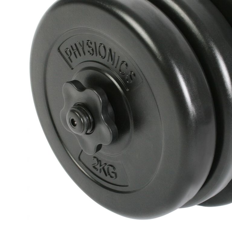 Trénink s činkami je ideální pro řadu cviků, které zlepší vaši formu a napraví svalové dysbalance. Sada obsahuje dvě ergonomicky tvarované činky a dvanáct zátěžových desek a váží celkem 40 kg (2 x 20 kg). Činka má protiskluzový žebrovaný úchopový povrch, takže se během tréninku můžete soustředit na zvedání závaží, zatímco hvězdicové zámky zajišťují zátěžové desky. Zátěžové desky jsou s plastovým krytem.