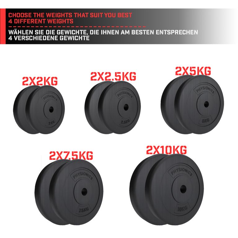 Cvičení doma vám dává svobodu cvičit kdy chcete a jak chcete. S touto sadou 2 ks závaží můžete trénovat tak dlouho, až dosáhnete svých vlastních fitness cílů. Kotouče jsou opatřeny plastovým povrchem, který je šetrný k podlaze. Zvažte své individuální potřeby a schopnosti a přizpůsobte tomu svůj trénink. Jaký je Váš důvod pro cvičení? Je to dobrý pocit? Chcete mít hezčí postavu? Chcete mít více svalů nebo zhubnout? Podle sebe si sestavte fitness trénink a my Vás vybavíme vším potřebným. V nabídce najdete vhodné tyče a další příslušenství, které můžete sladit s těmito kotouči.
