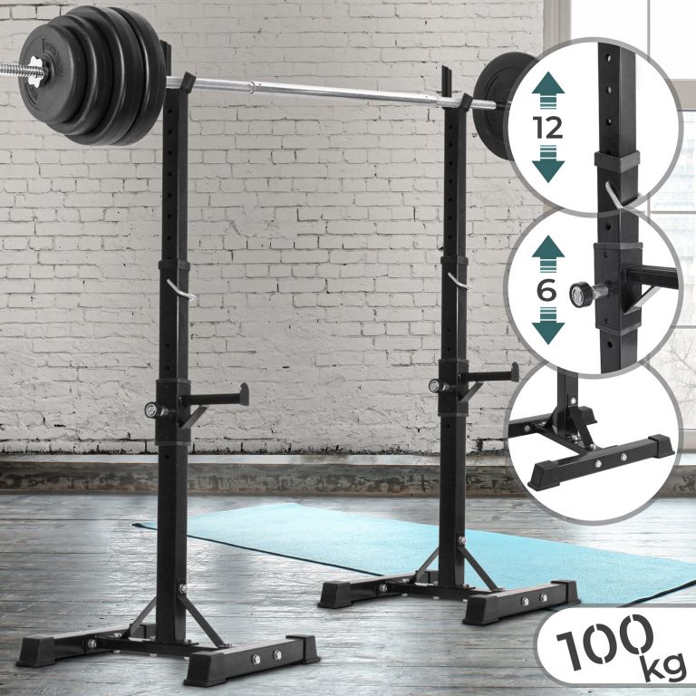 Robustní a stabilní stojan na činky se skvěle hodí do vaší domácí posilovny. V kombinaci s posilovací lavicí (není součástí dodávky) je ideální pro každý trénink s činkou a dřepy. Kompaktní a prostorově úsporný a vhodný pro jakoukoli délku činky. Tento stojan je vhodný pro začátečníky i pokročilé uživatele.