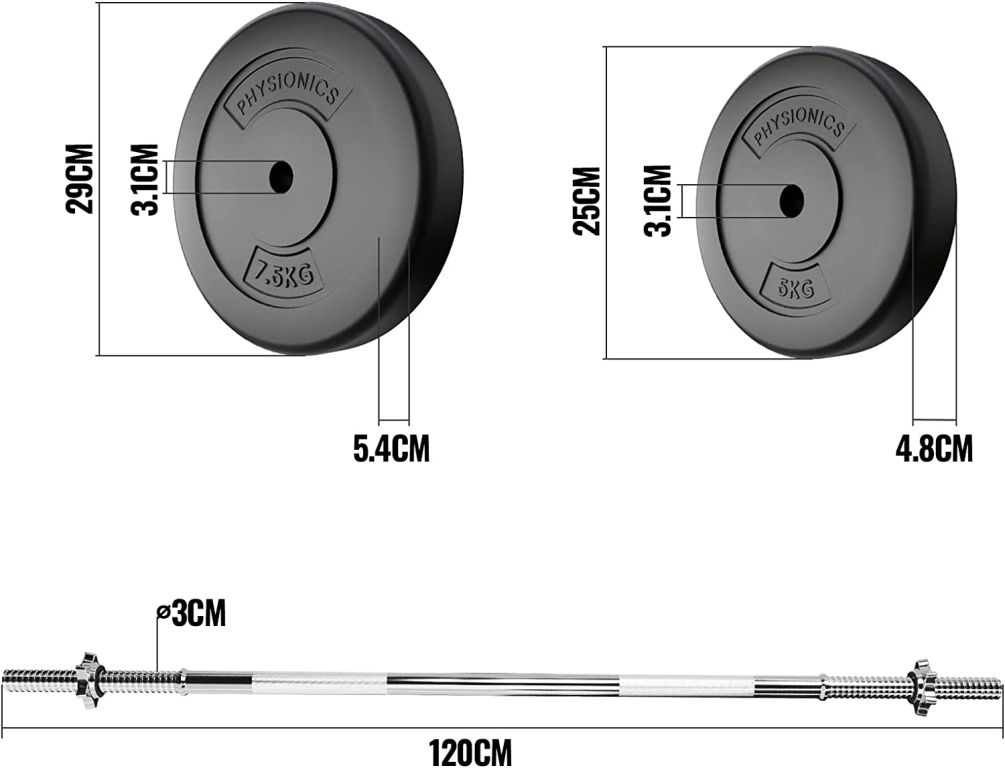 Zohledněte své osobní cíle a schopnosti a přizpůsobte tuto sadu vašemu tréninkovému plánu. Dvě 20 cm dlouhé rukojeti na dlouhé čince mají protiskluzový povrch, který zajišťuje, že vaše ruce nekloužou z tyče. Zátěžové kotouče jsou naplněny cementem a jsou opatřeny odolným plastovým potahem, který nepoškodí podlahovou krytinu.