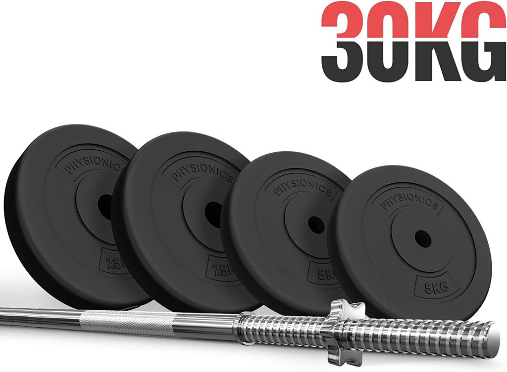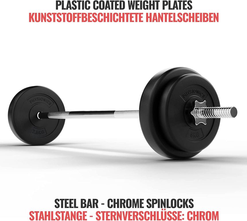 PHYSIONICS Vzpěračský set se závažím 120 cm, 30 kg