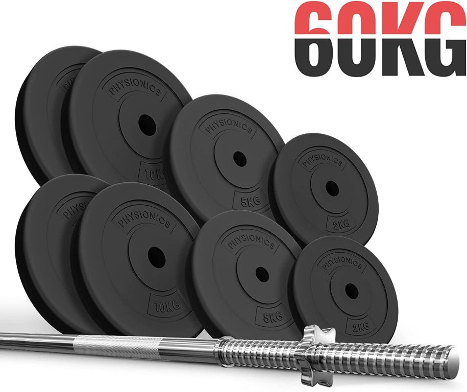 PHYSIONICS Vzpěračský set se závažím 165 cm, 60 kg