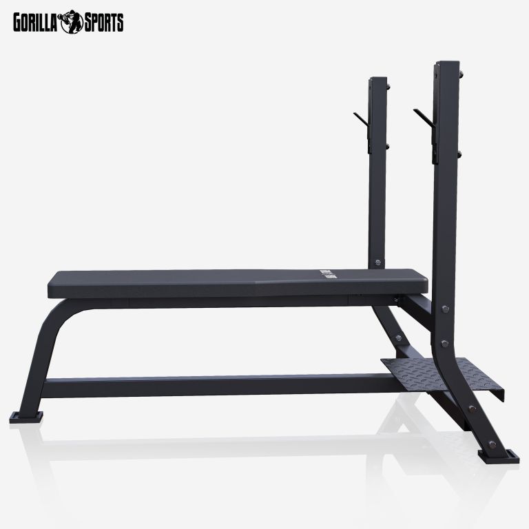 Široká bench lavice Gorilla Sports s odkládacími stojany