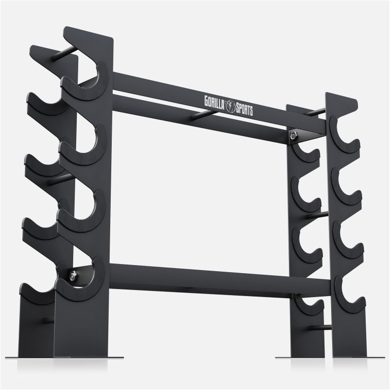 Udělejte si ve svém tréninkovém prostoru konečně pořádek. Posilovací stojan na činky Gorilla Sports s 8 policemi na dvou úrovních vám pomůže bezpečně a přehledně uskladnit jednoruční činky všech typů. Elegantní a kompaktní design zabere minimum místa, takže se perfektně hodí i do menší domácí posilovny. Navíc přispívá ke zvýšení bezpečnosti – žádné činky po zemi, vše na svém místě a vždy po ruce.